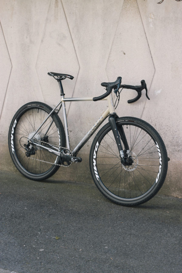 la petite histoire Gillian’s 27.5” monster cross gravel bike in Columbus Life tubing with internal cable routing and a Columbus Futura Cross+ fork. Equipped with Campagnolo EKAR 13 speed groupset, Deda finishing kit, Damil Components xTwentysix carbon wheelset + Panaracer Gravelking 54mm tires. Finished off in a clash off-white/orange paintjob. We think this high…