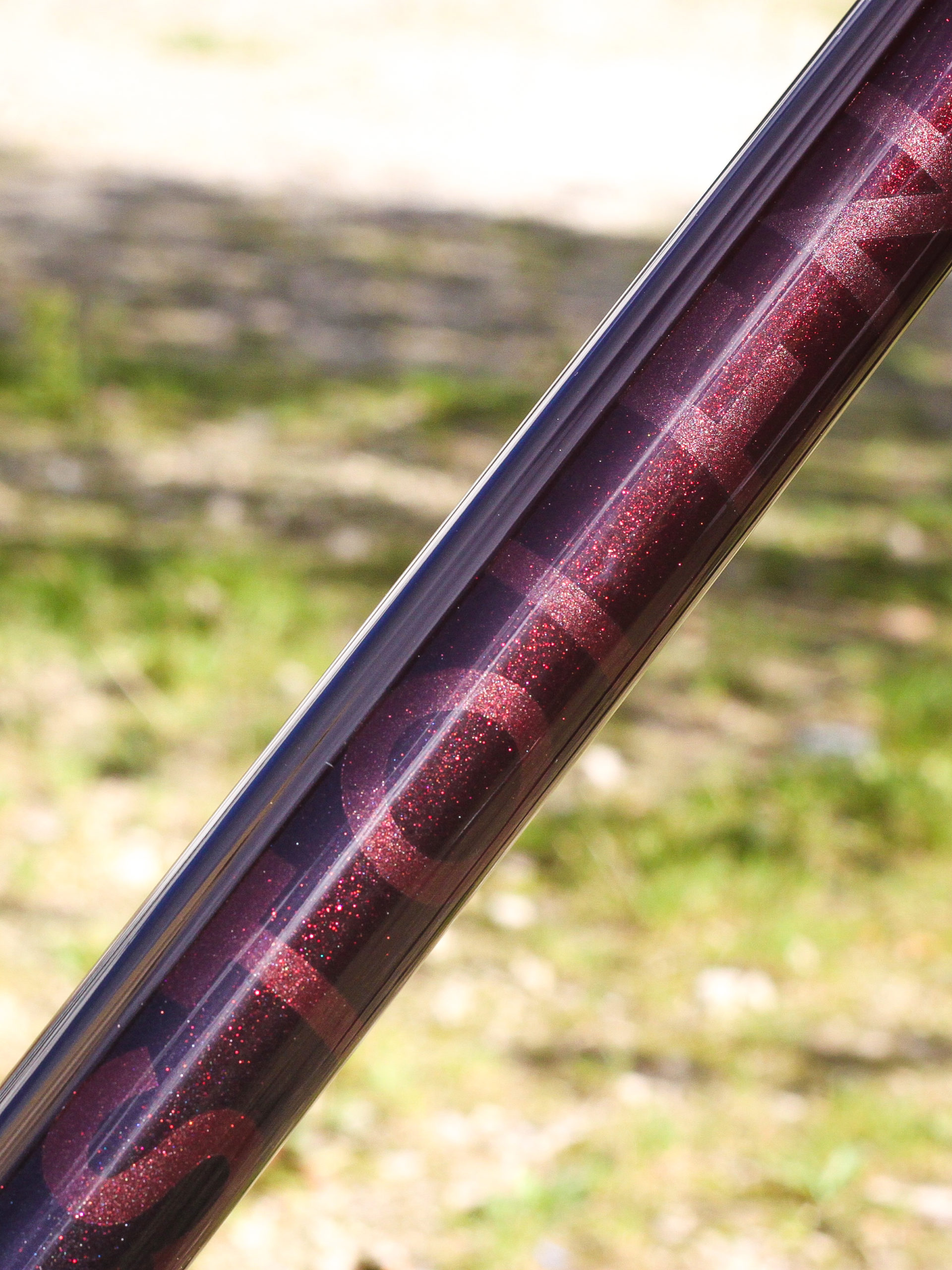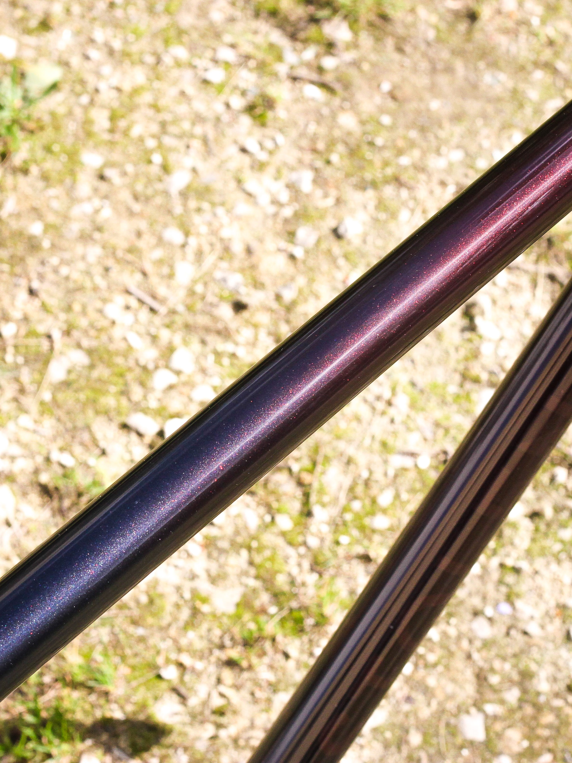The front disc tab by @paragonmachine has been reworked to perfectly fit the curve of the fork blade. Paintwork made in-house: black Lamborghini Pegaso fade into bordeaux Ferrari Pontevecchio.