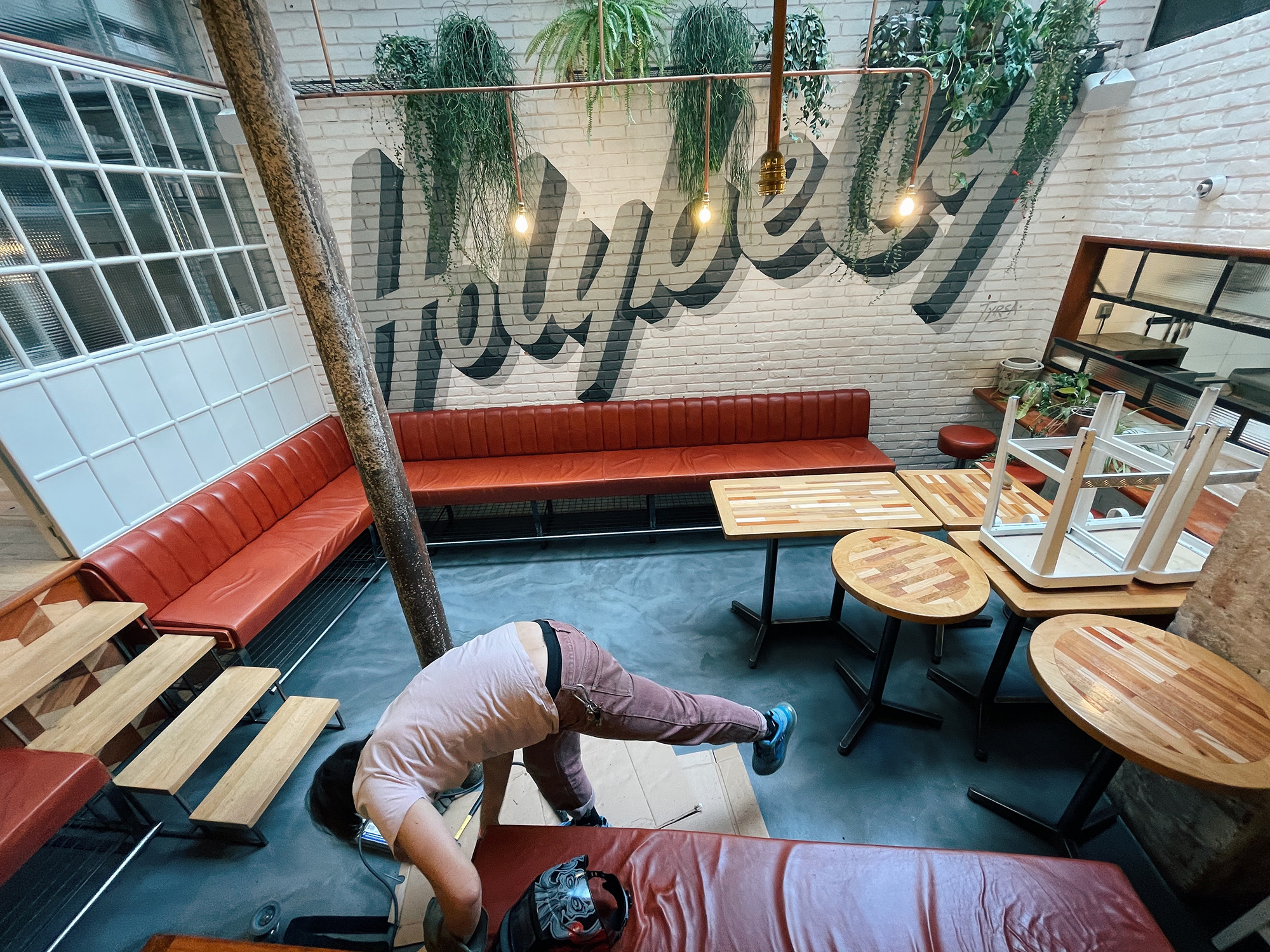 Our long-term friends Nico & Sarah of Holybelly Café in Paris run a tight operation sharing the same values as ourselves: benevolence and efficiency. Their world famous slogan “it’s good because we care” is something that inspires us and with an operation that serves 500+ customers a day a lot of care is needed. Therefore on occasion we have repaired their bespoke benches to keep everything running smoothly.