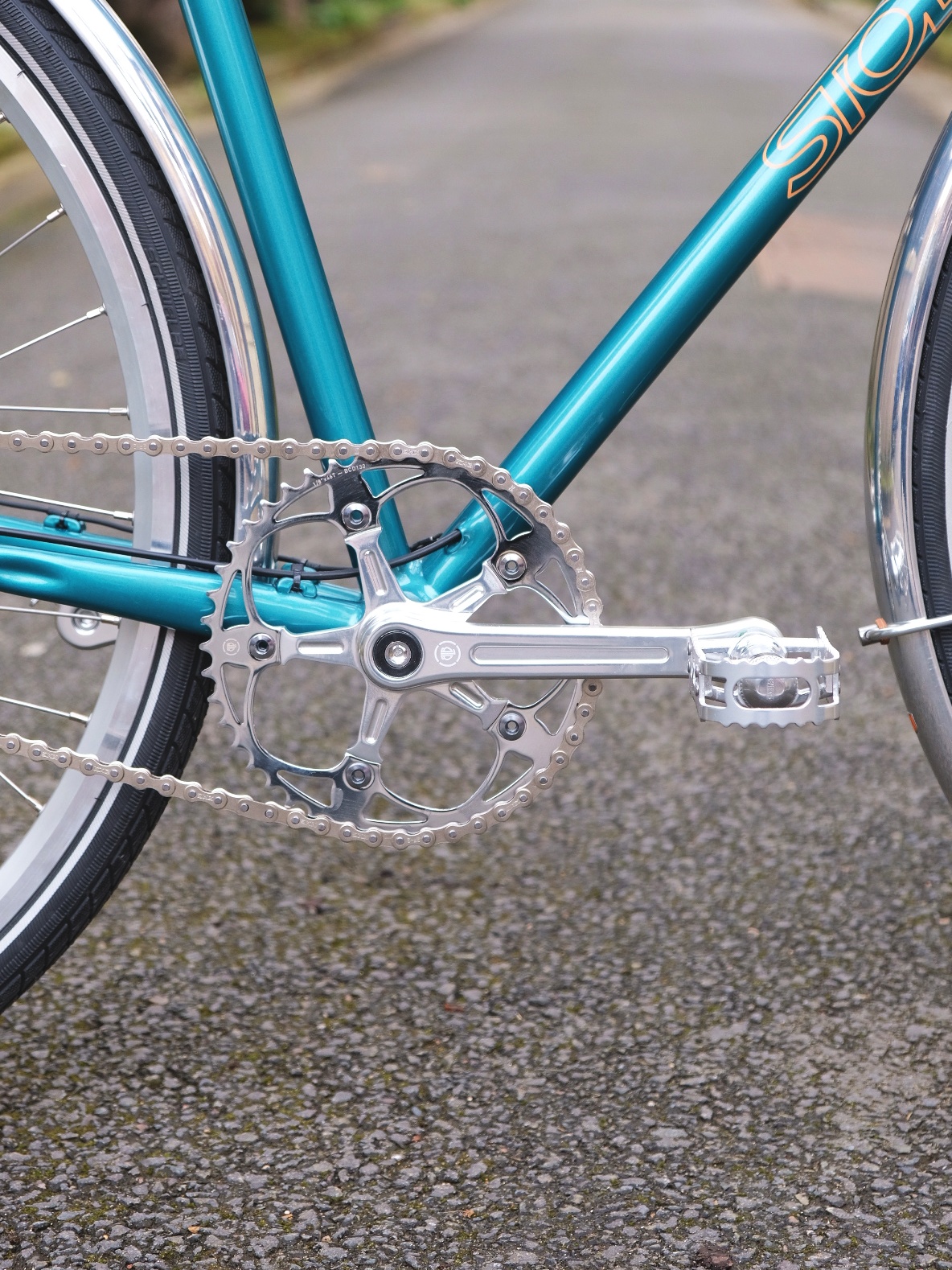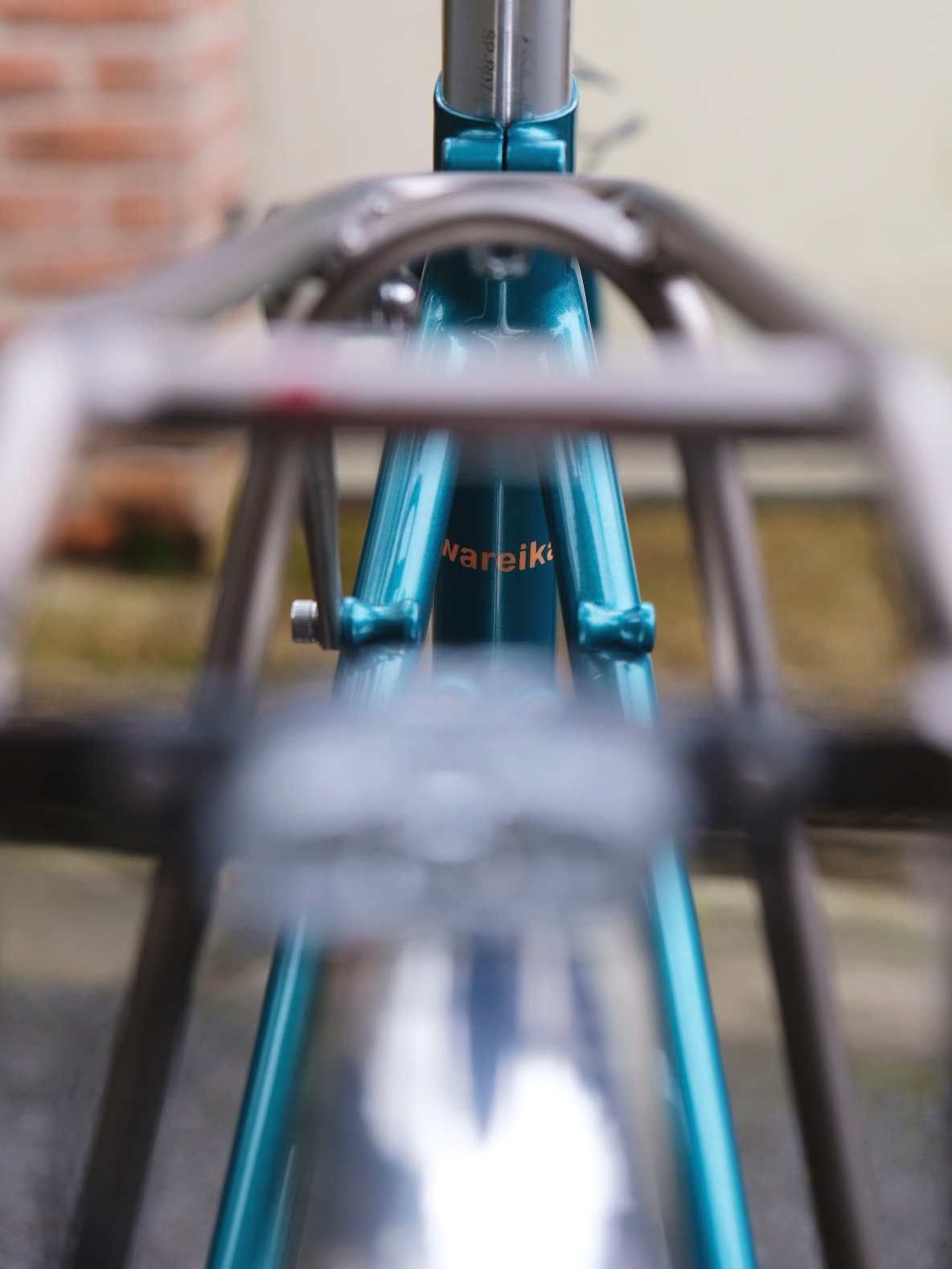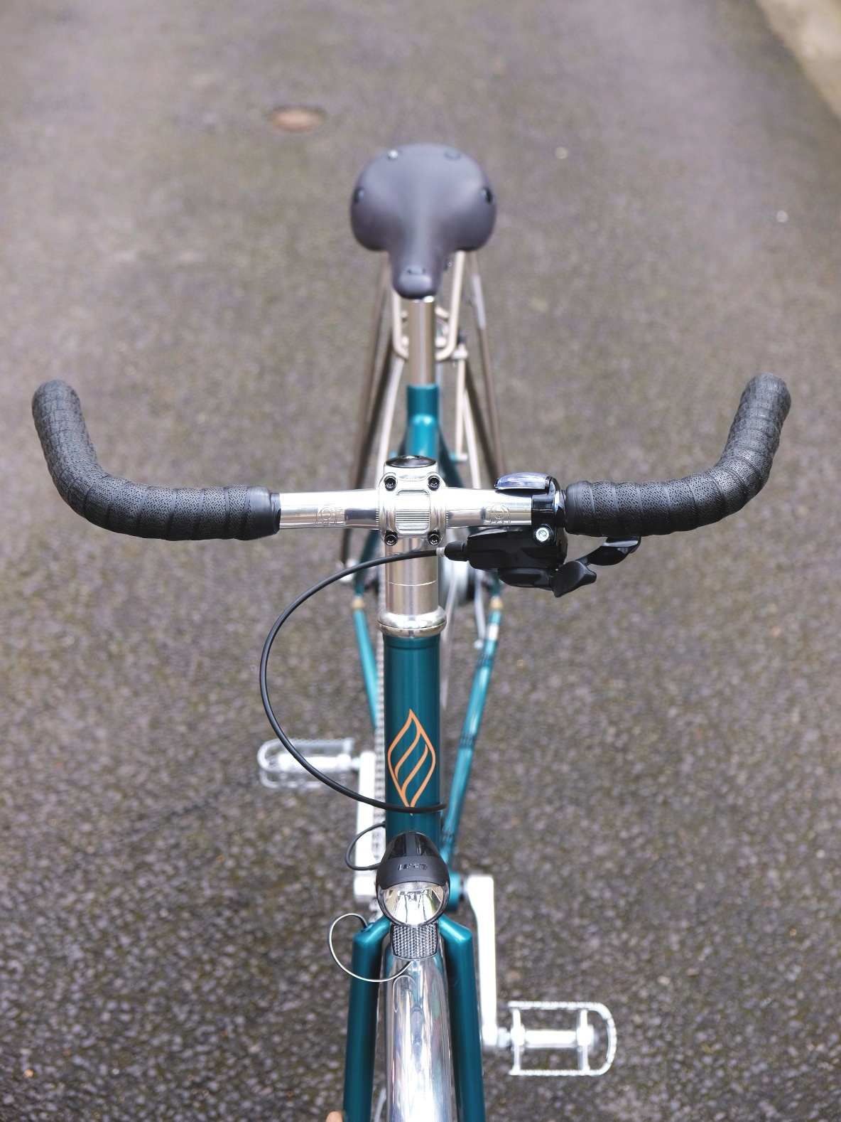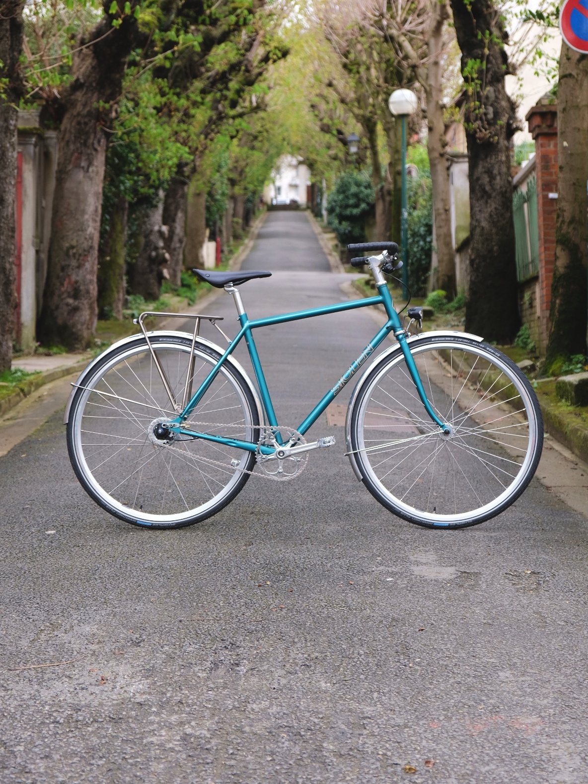 Given his primary use for urban commuting along the Seine, we customized the geometry with an open steering angle and extended caster to improve stability.