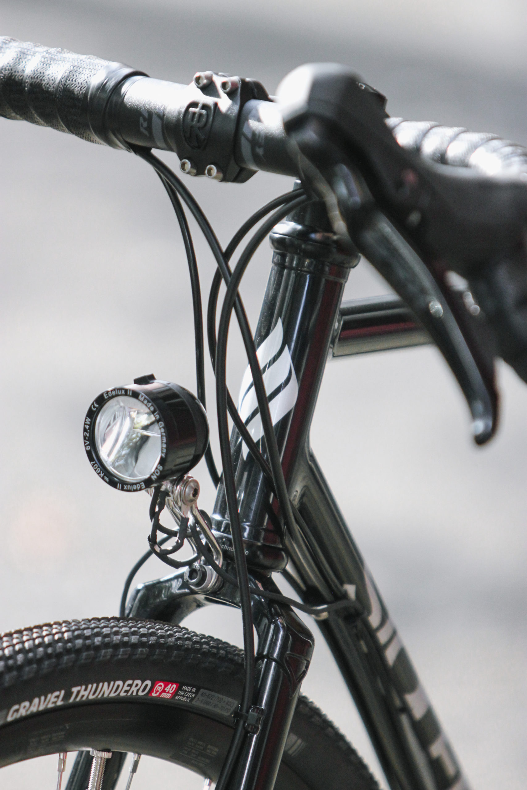 Introducing Thàhn’s Gravel/Travel bike, meticulously crafted for an unforgettable long-distance journey along the picturesque Mediterranean coastline. Designed and built with a focus on all-day comfort, it’s an ideal workhorse when fully loaded. Whether tackling rugged terrain or gliding along smooth tarmac, its Tufo Thundero tyres ensure a confident, fast rolling ride. Equipped with reliable Son dynamo lights and durable tubus stainless steel racks, this setup is ready for any adventure.