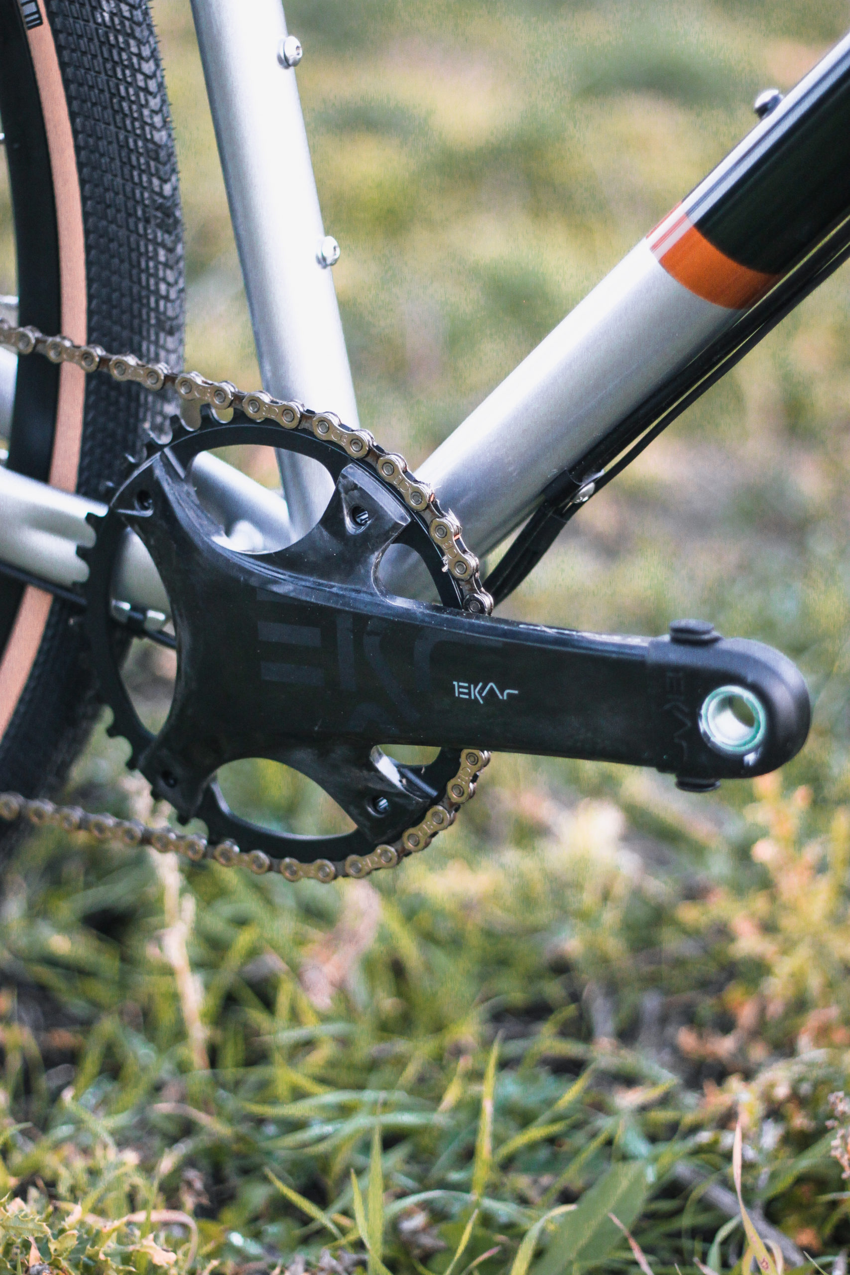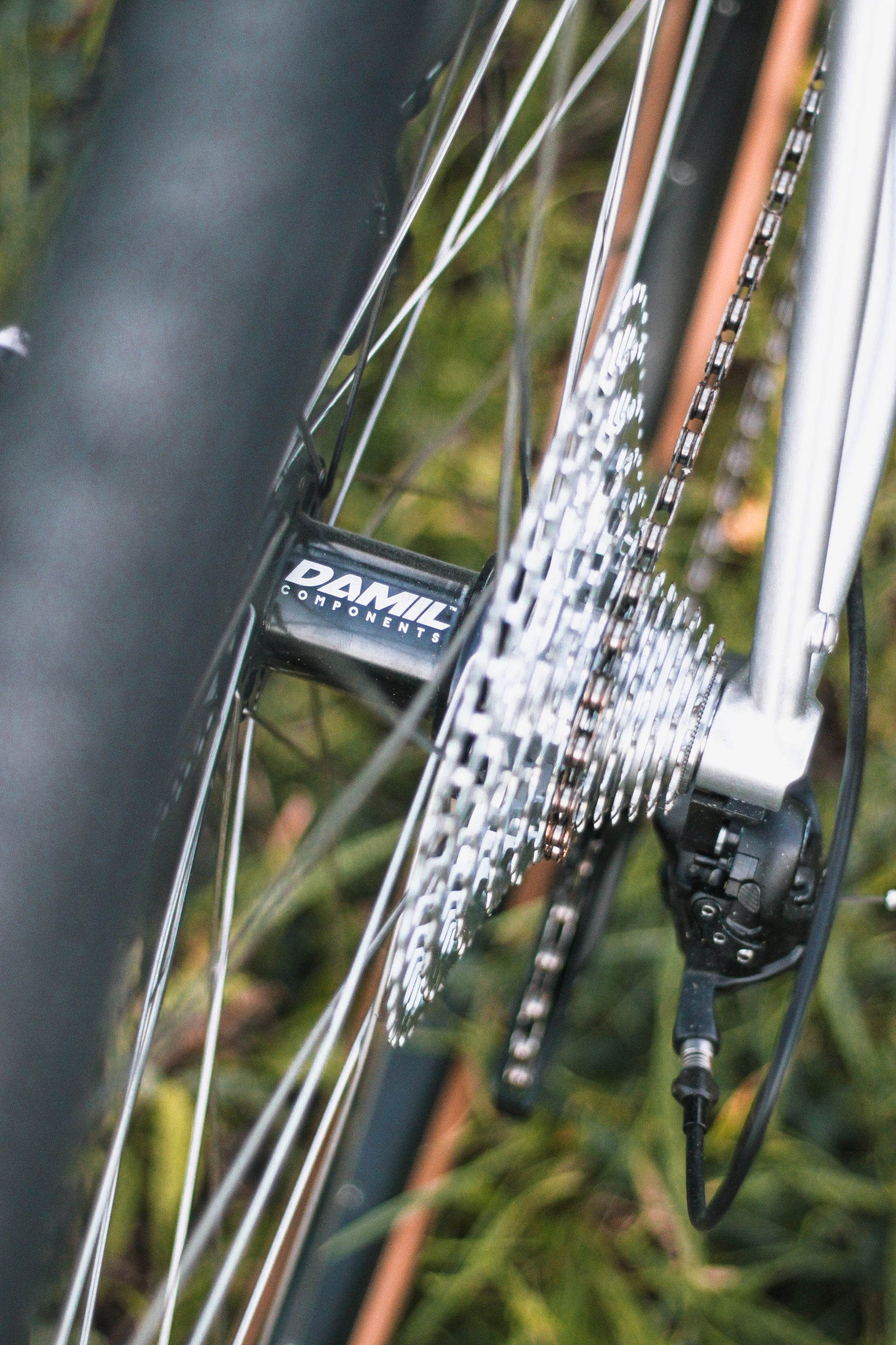 Campagnolo EKAR groupset + Son/Damil hubs laced to DT Swiss rims with Tufo Speedero tires. Deda finishing kit with Brooks Swift saddle. + Hope headset/seatclamp. Finishing it all off is that lovely Grepp washable bartape.