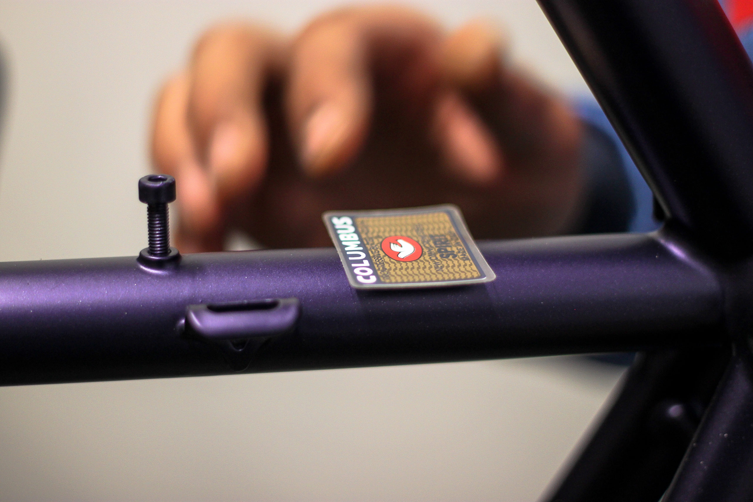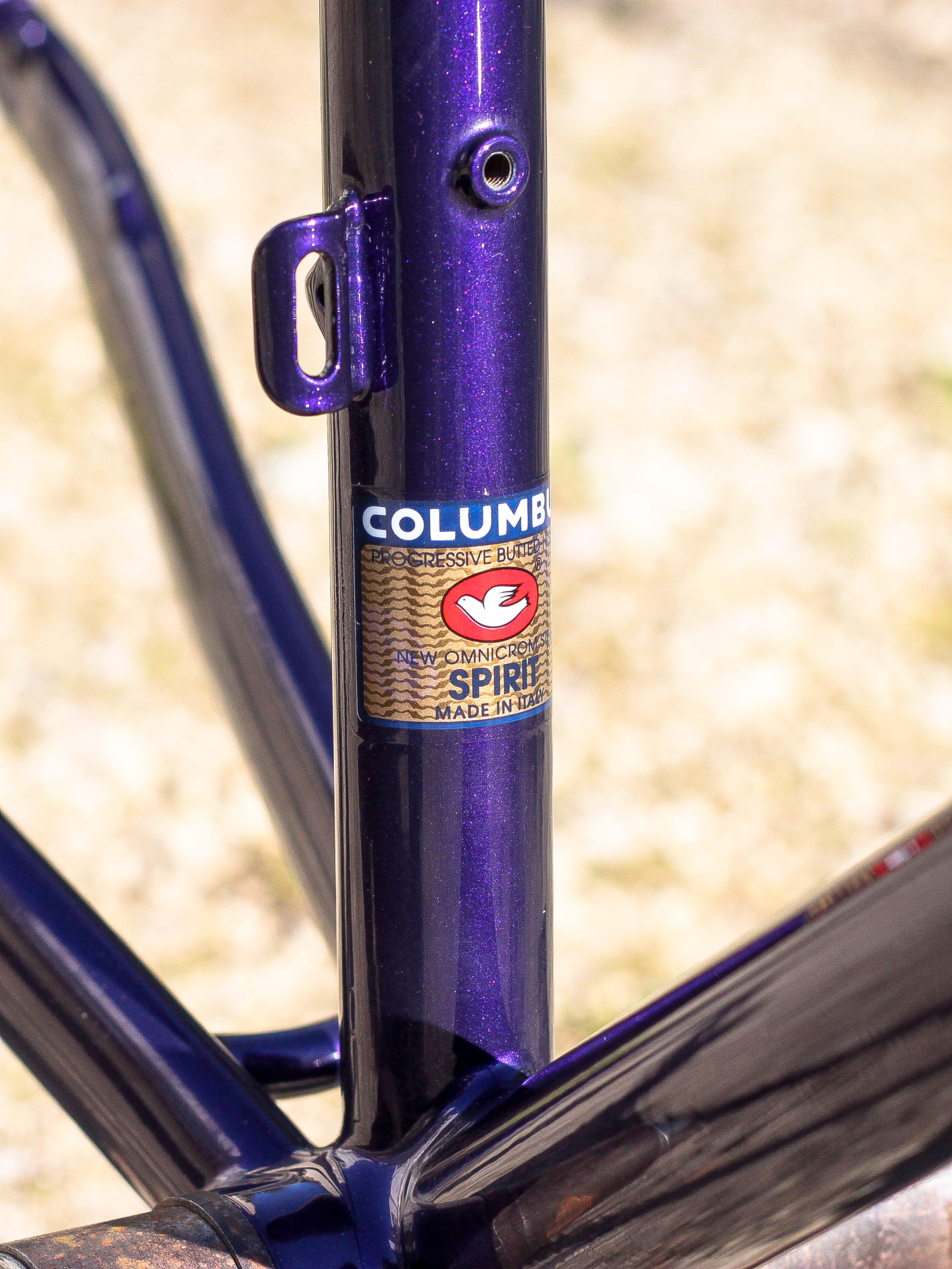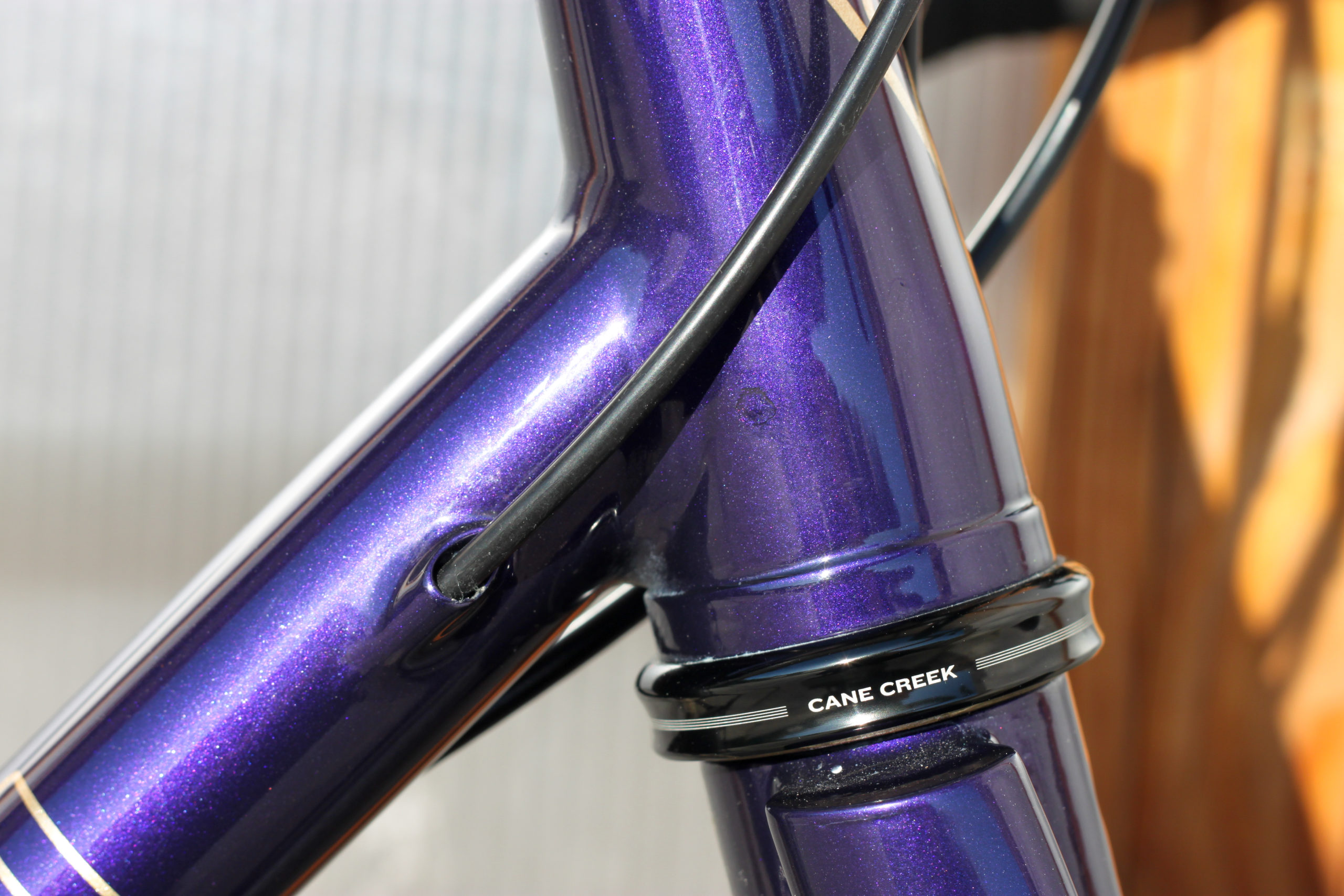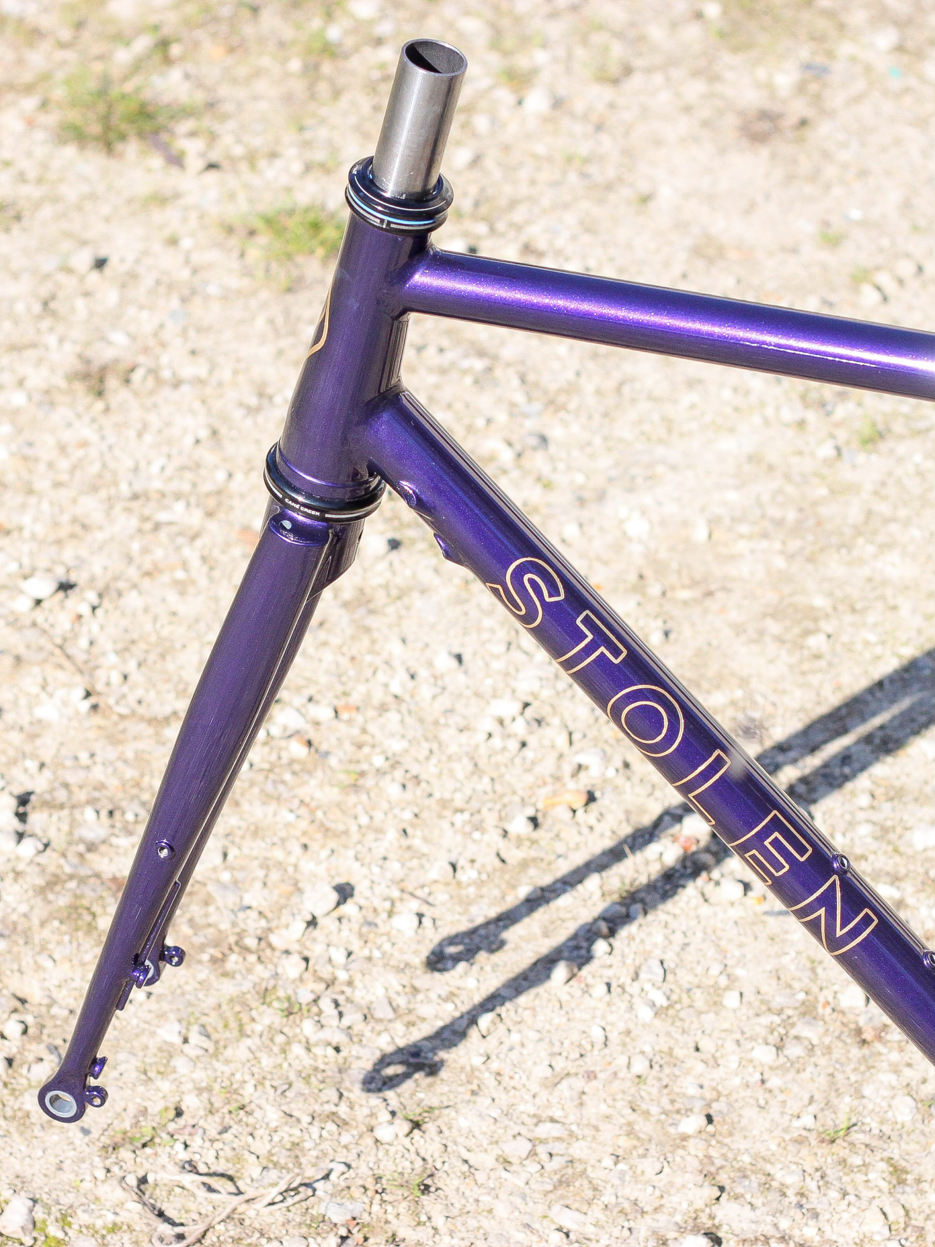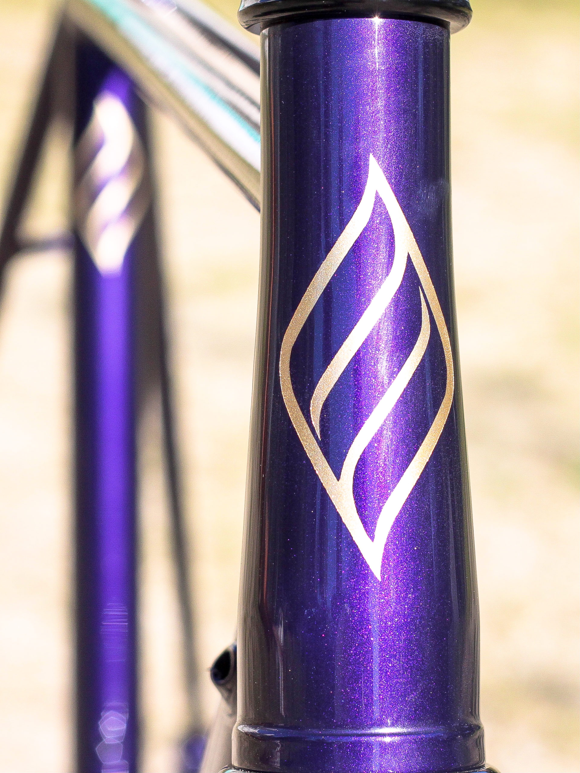 Le montage complet du vélo all-road et sur mesure de Nona, fabriqué avec des tubes Columbus Spirit. La peinture a été réalisée au Garage avec un Lamborghini Viola Aletheia, additionné d’un Lamorghini Oro Helios pour le logo et la typographie. Nous sommes très heureux du résultat !