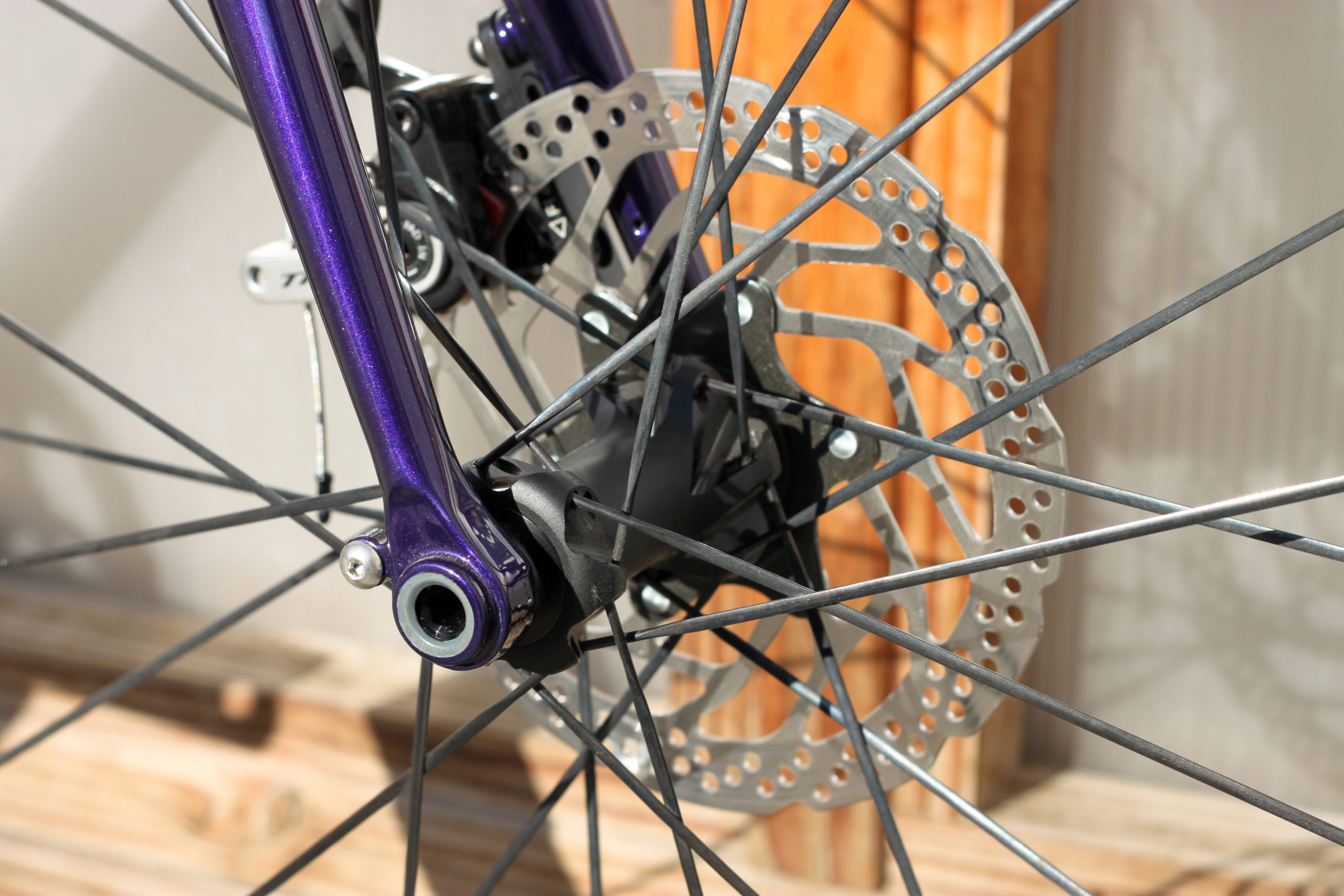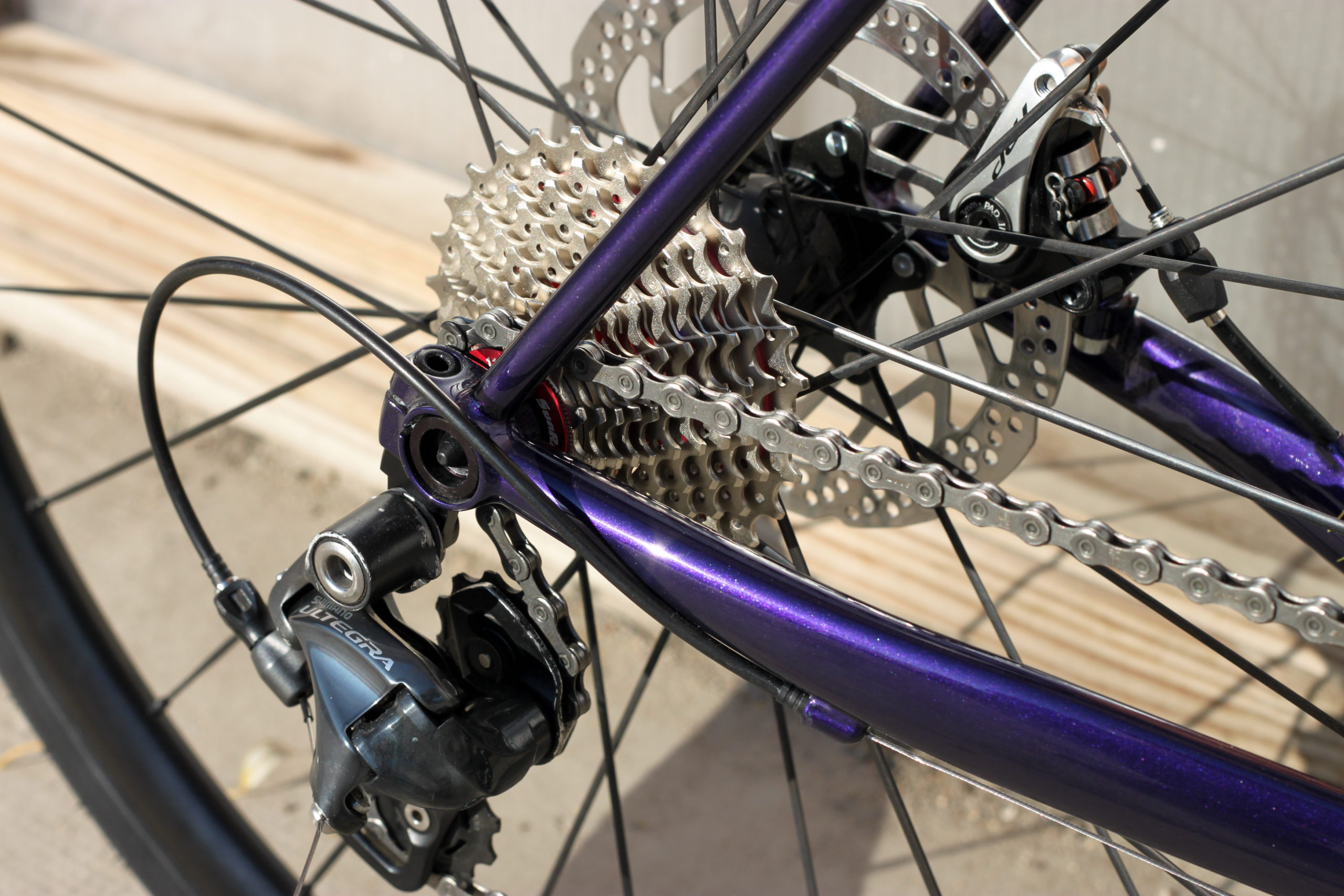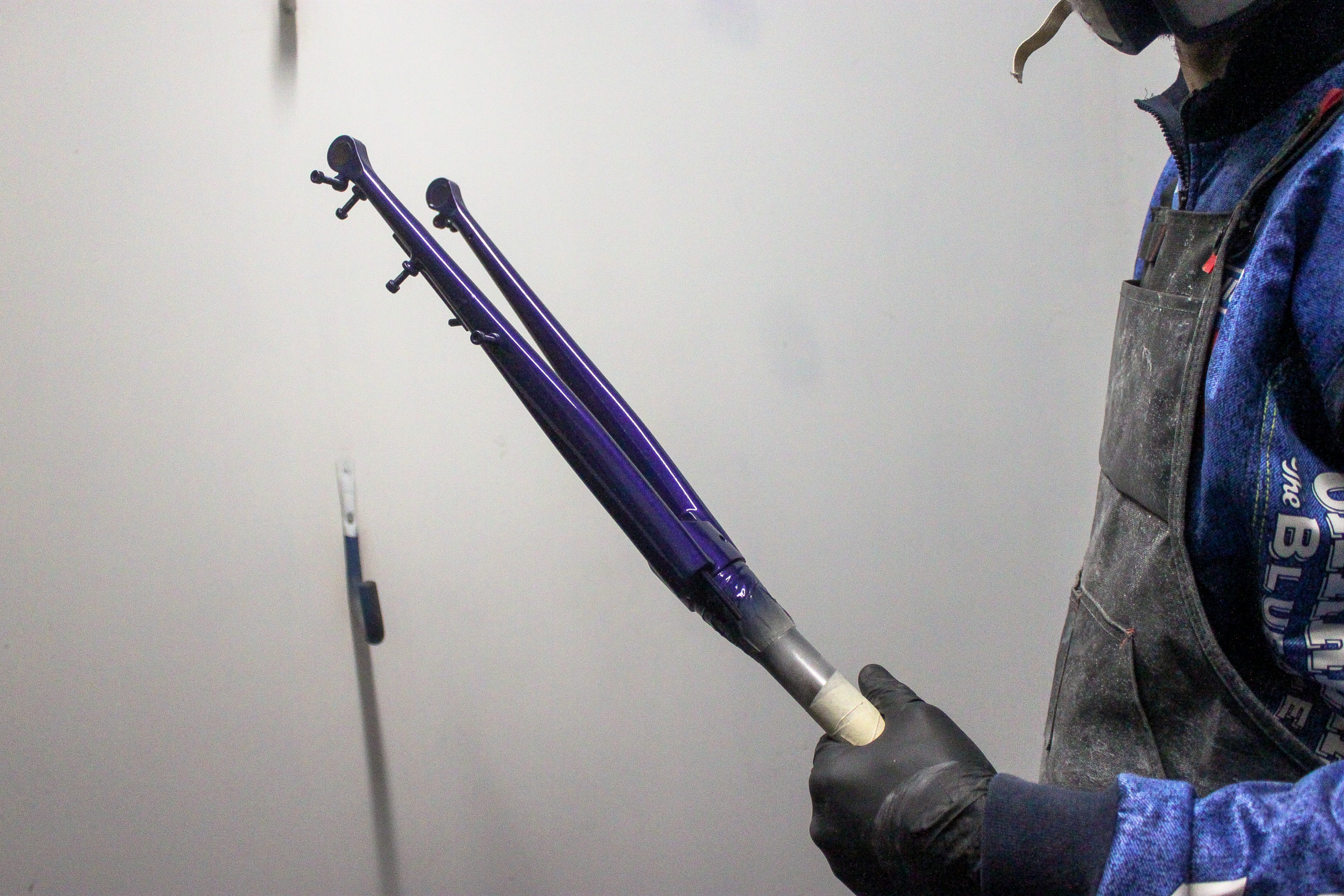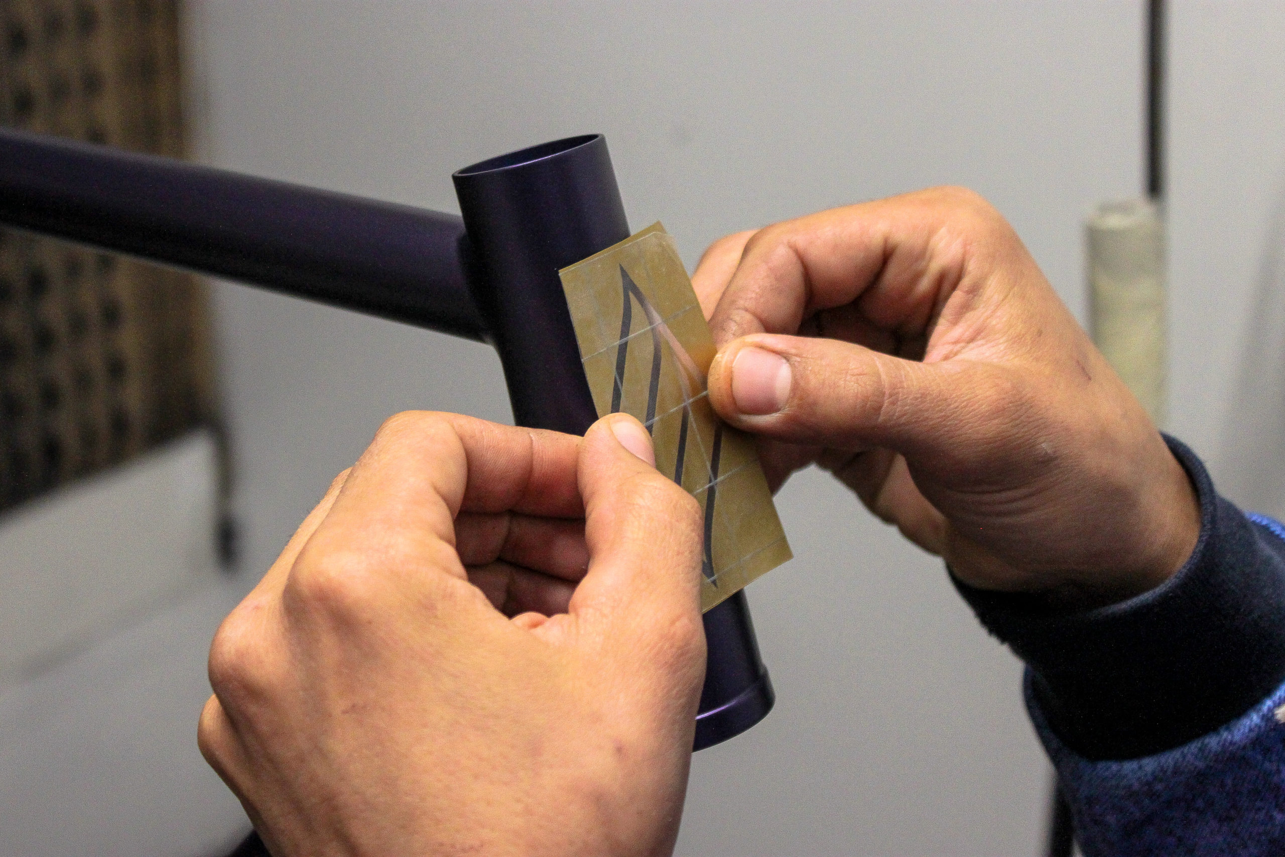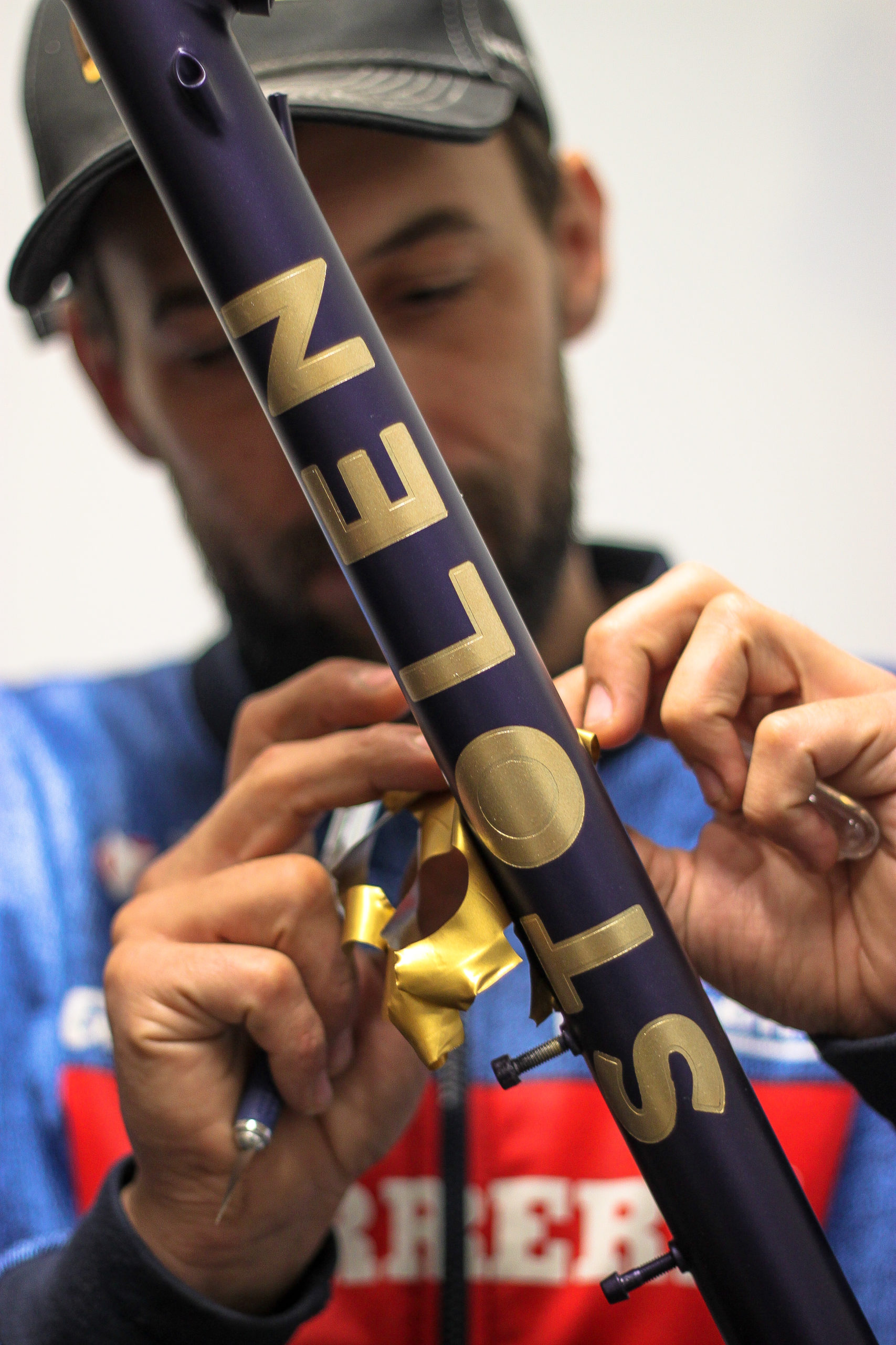 Le montage complet du vélo all-road et sur mesure de Nona, fabriqué avec des tubes Columbus Spirit. La peinture a été réalisée au Garage avec un Lamborghini Viola Aletheia, additionné d’un Lamorghini Oro Helios pour le logo et la typographie. Nous sommes très heureux du résultat !