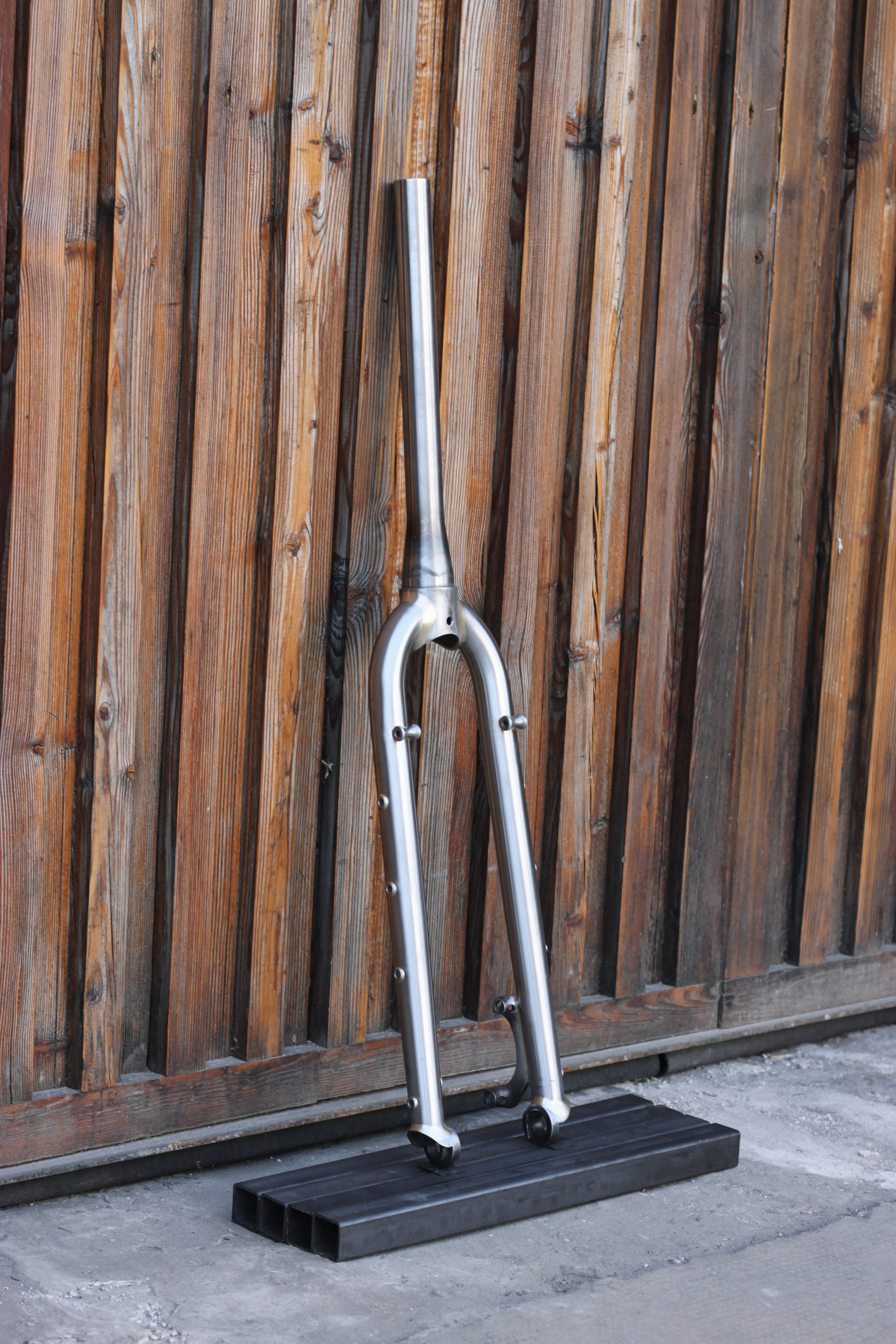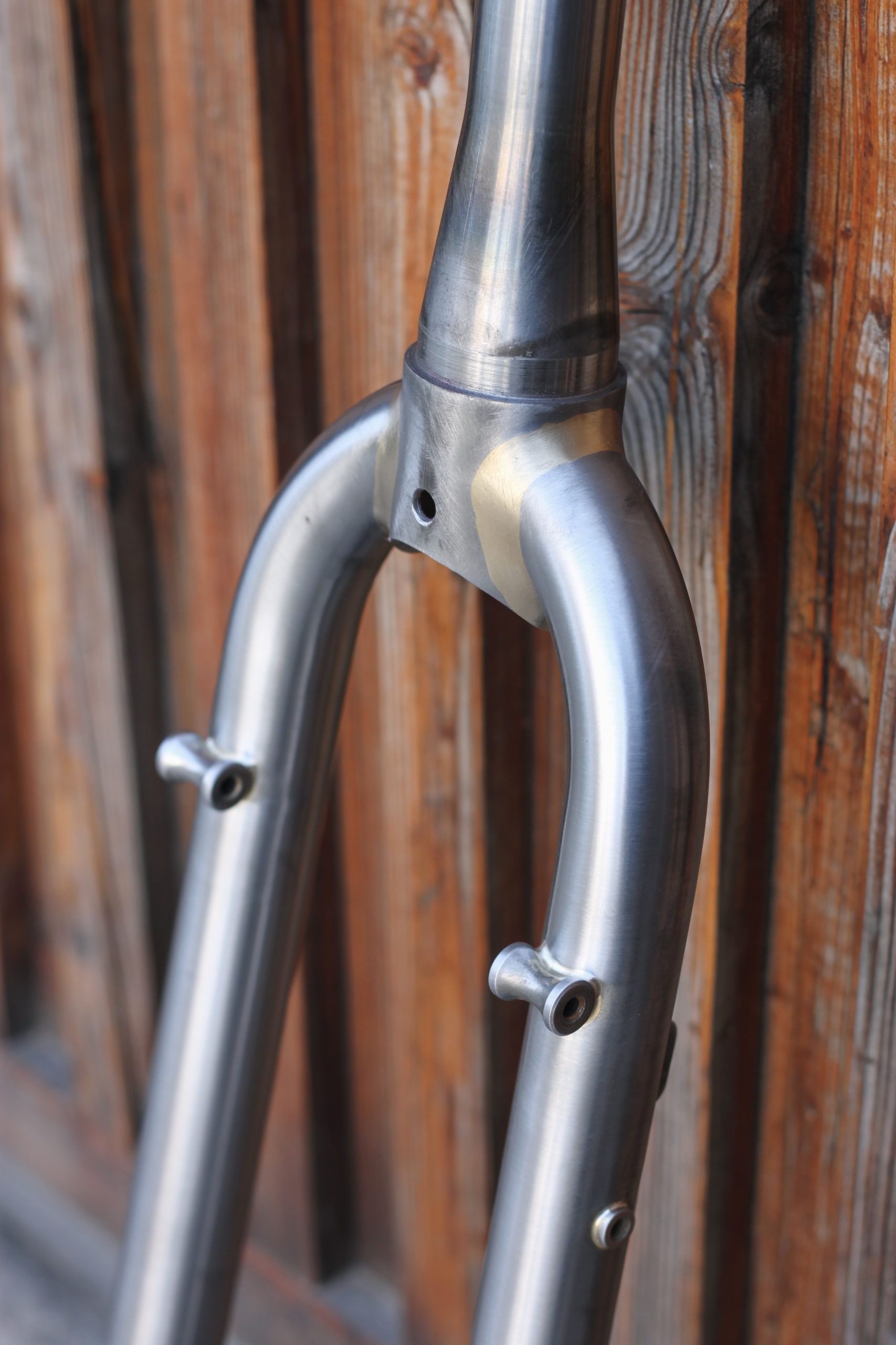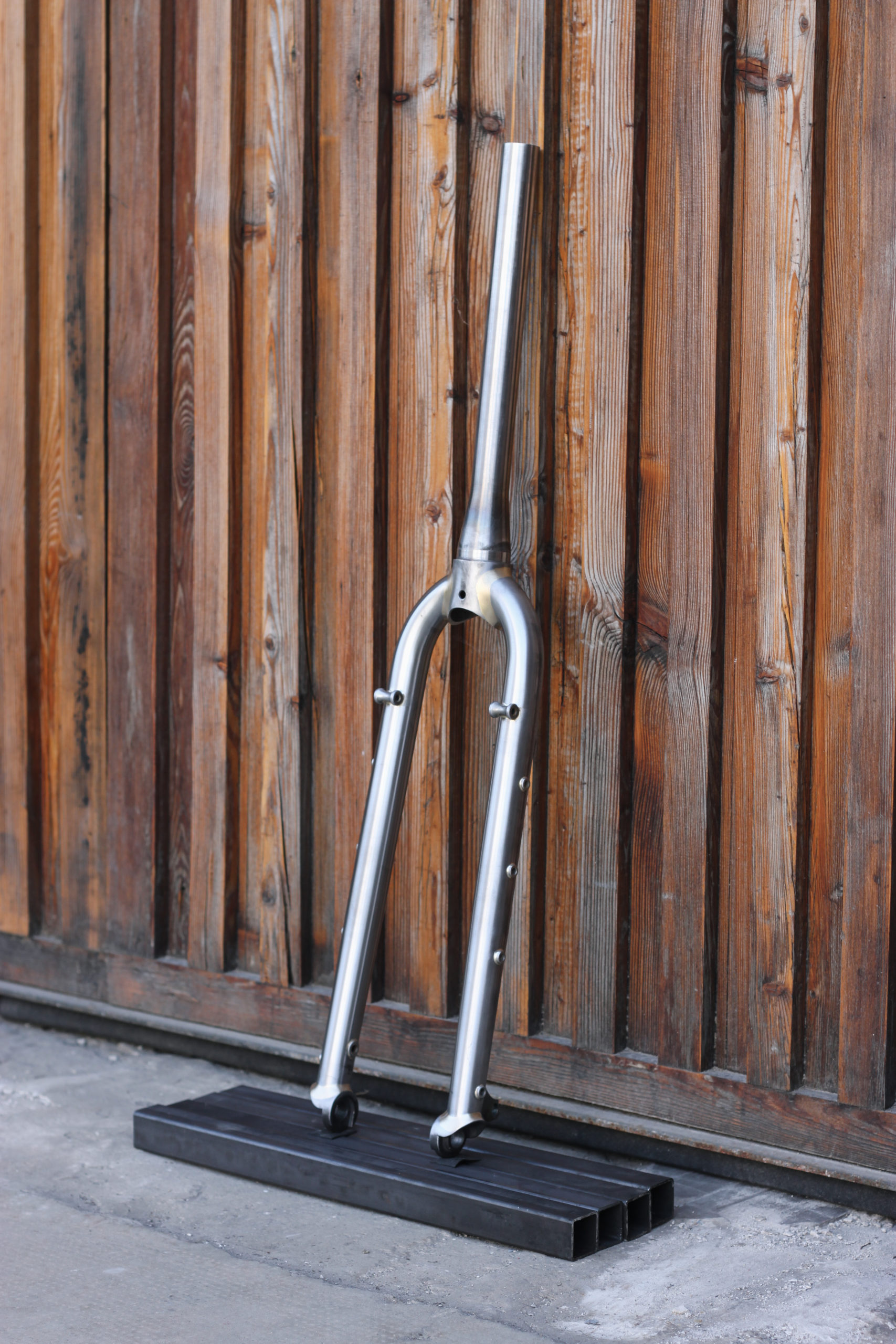 Fourche custom pour le Bombtrack de Maxime, qui souhaitait une fourche plus légère avant de partir en périple à vélo à travers l’Amérique du Sud.