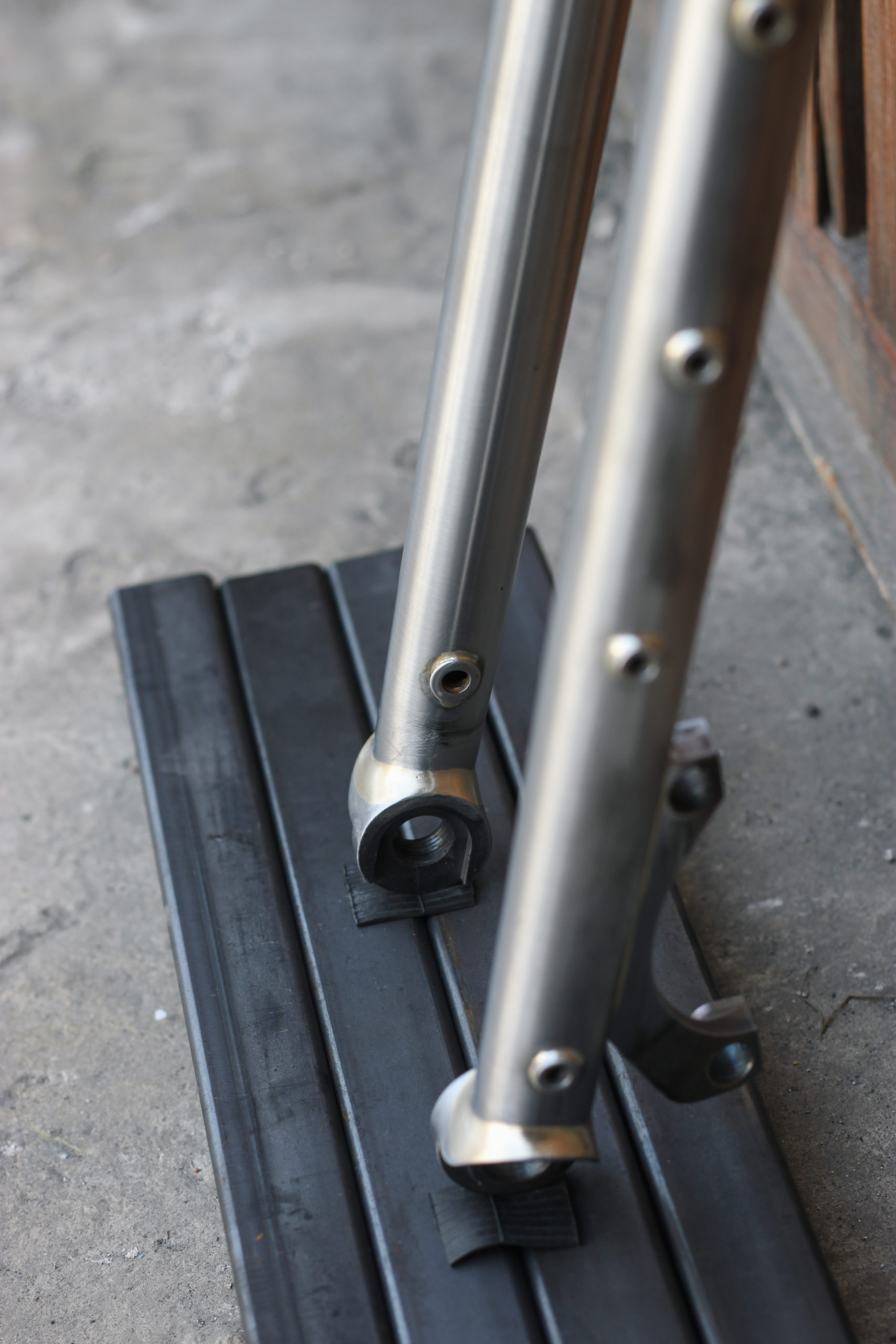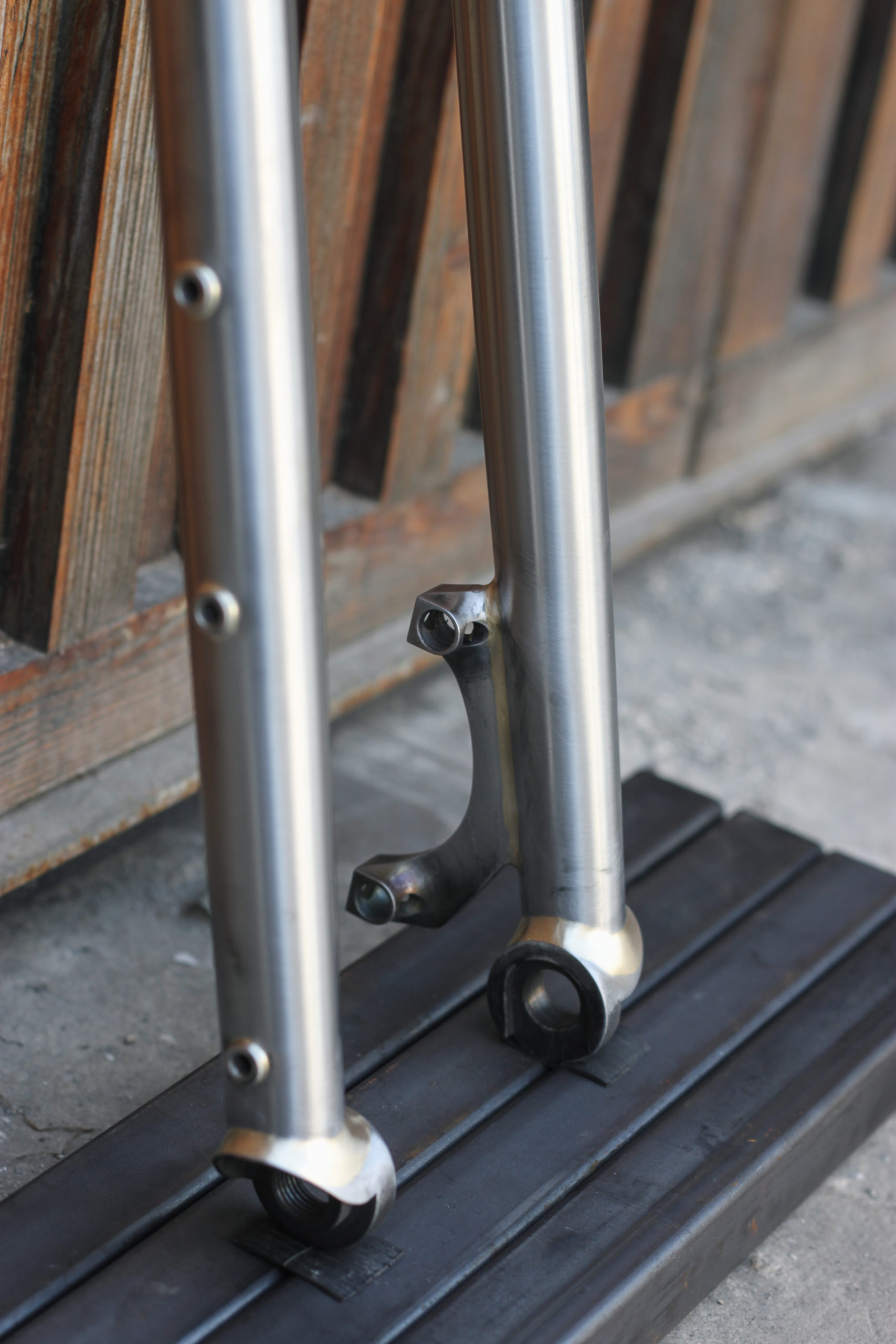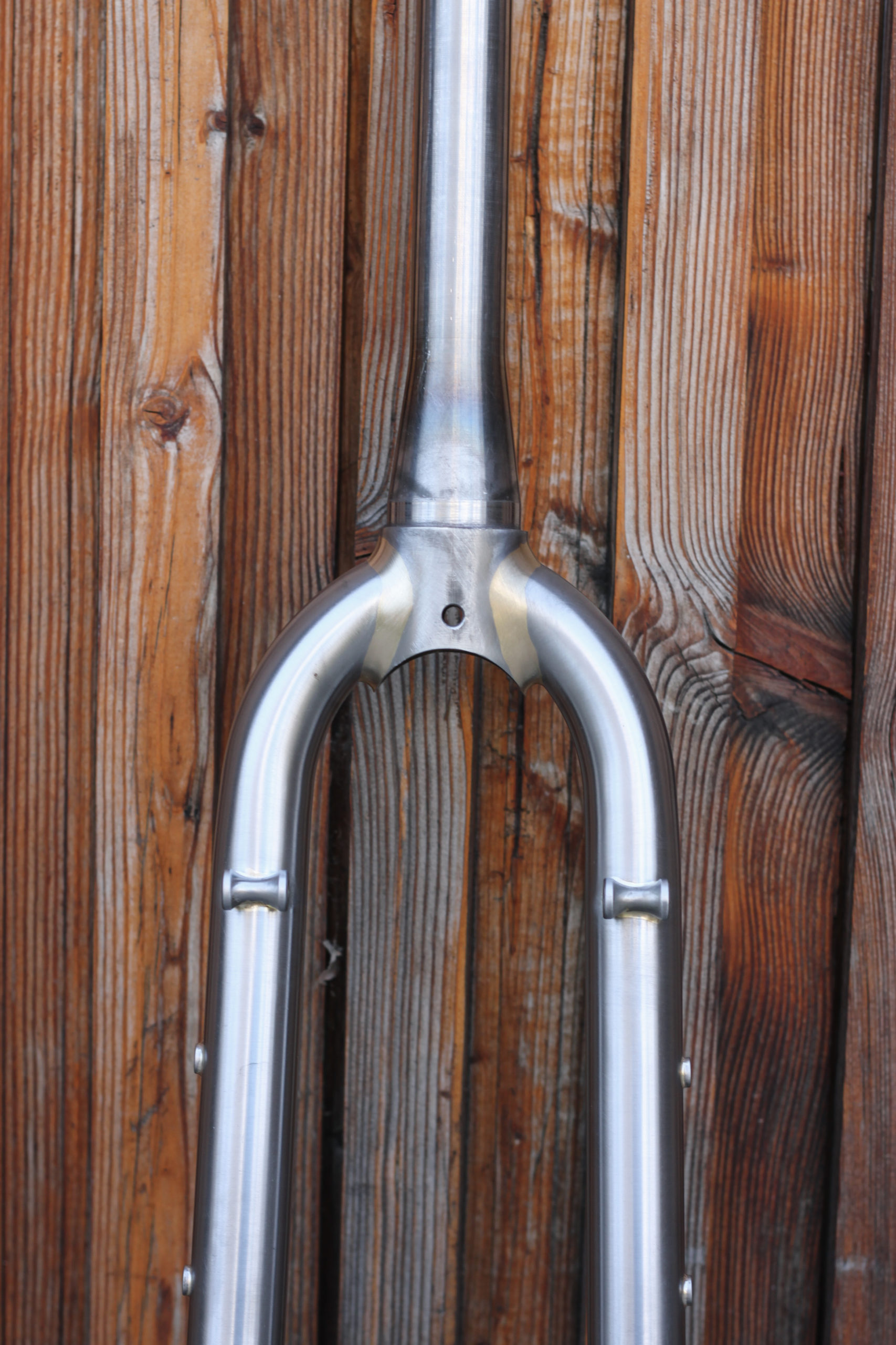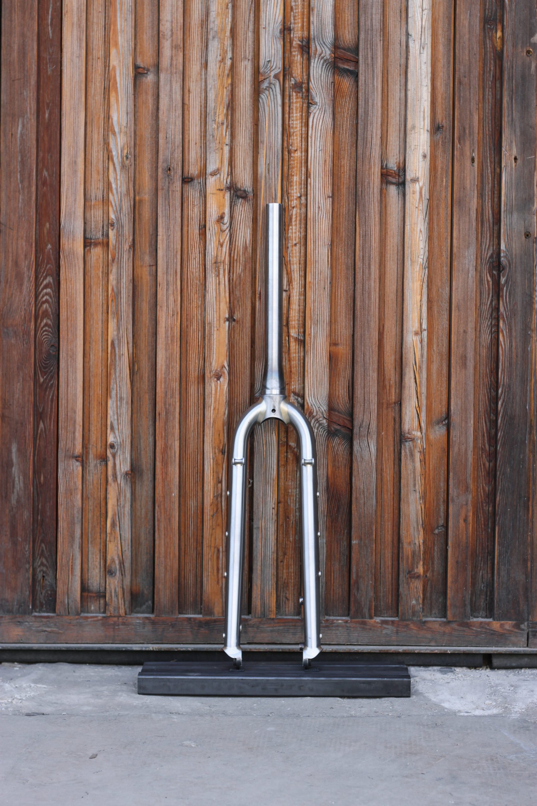 Fourche custom pour le Bombtrack de Maxime, qui souhaitait une fourche plus légère avant de partir en périple à vélo à travers l’Amérique du Sud.