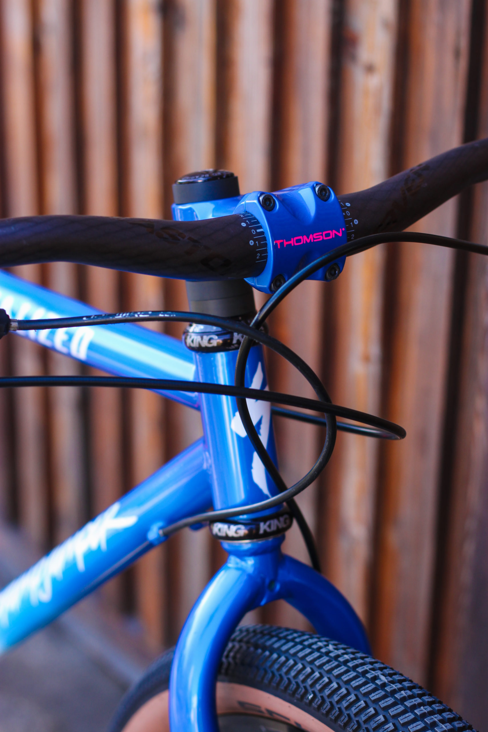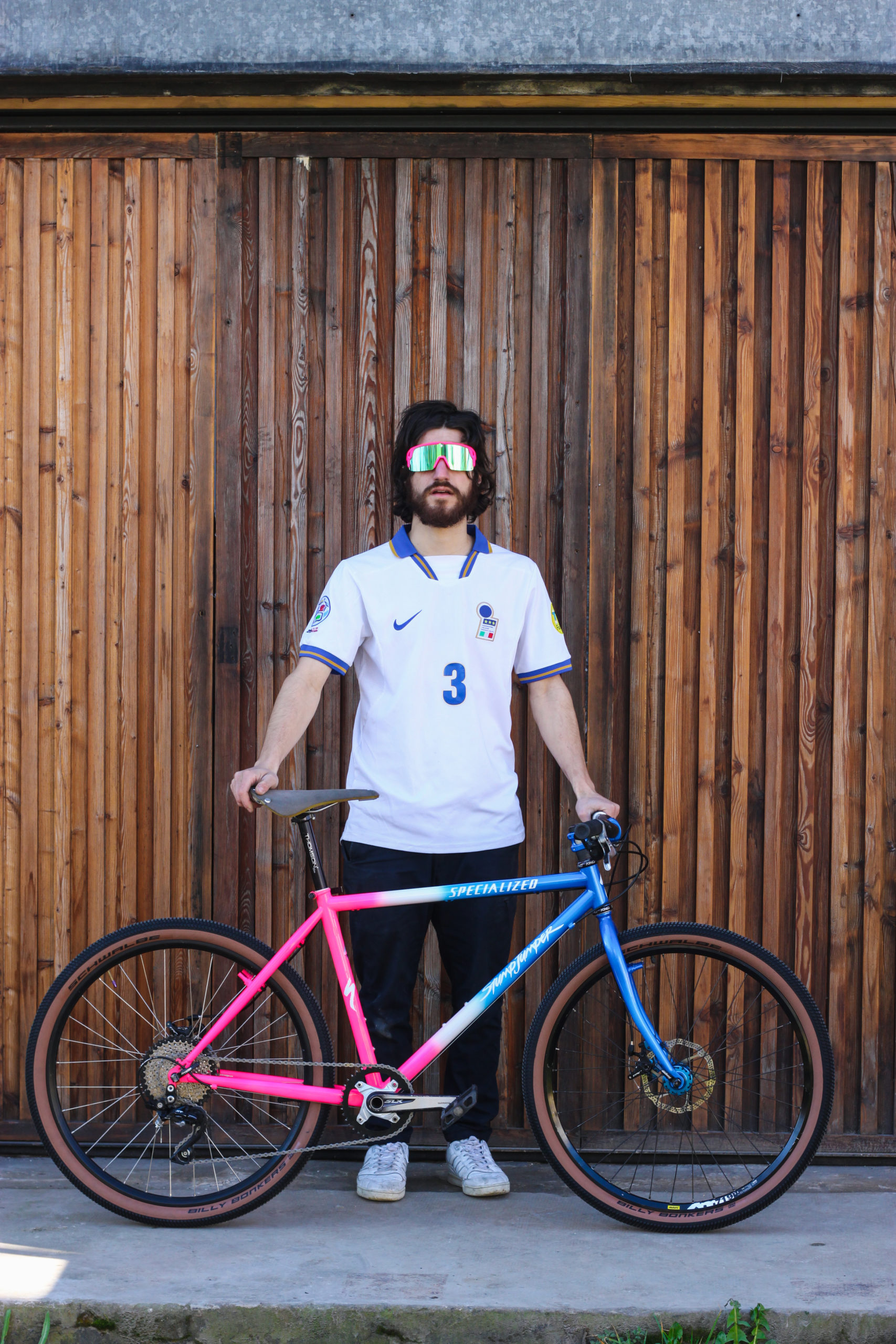 Luca a également peint lui-même son vélo, avec un magnifique fade tricolore qui fait honneur aux années 90. Et en bonus, la potence Thomson custom pour un match parfait.