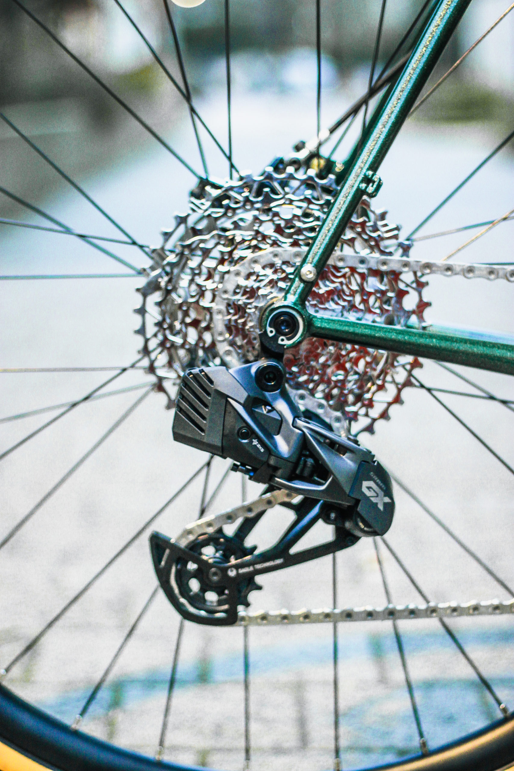 La polyvalence du groupe Sram AXS signifie que Bastien pourrait un jour passer à un guidon drop et enfin avoir ce dont la plupart des gens ne peuvent que rêver, un MULLET ! « Business » à l’avant et « fête » à l’arrière (guidon drop avec une cassette VTT).