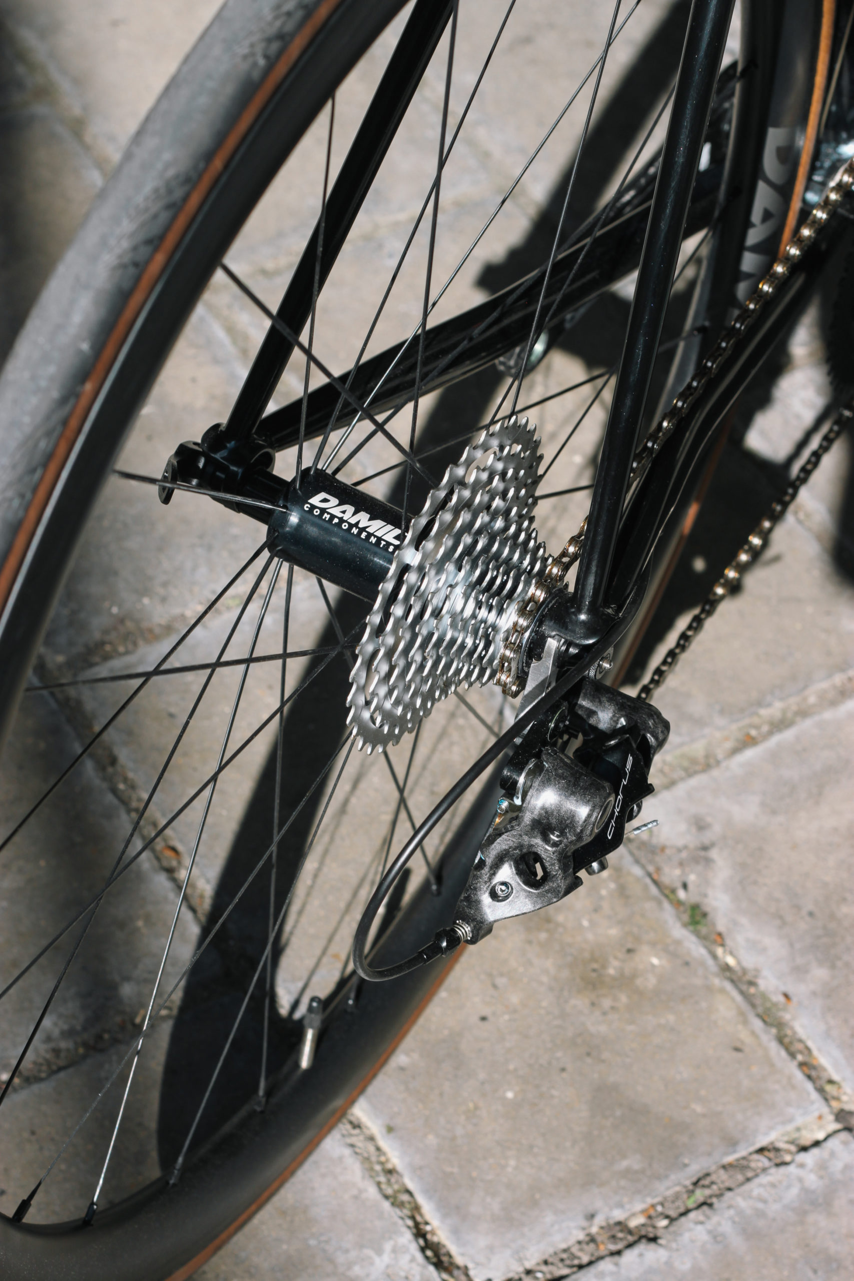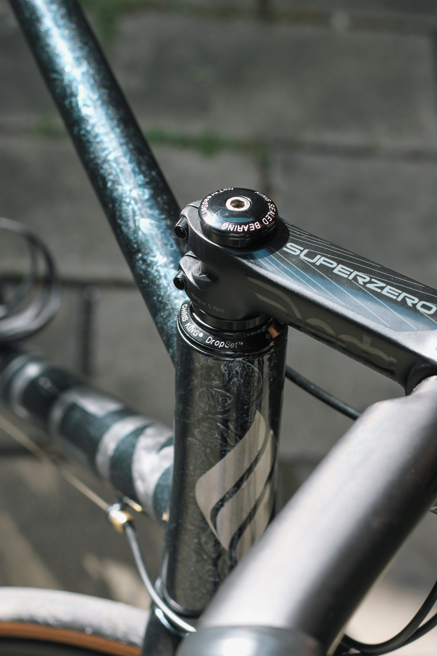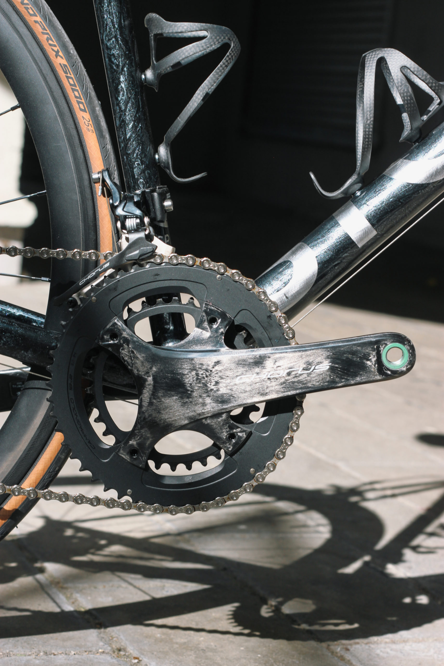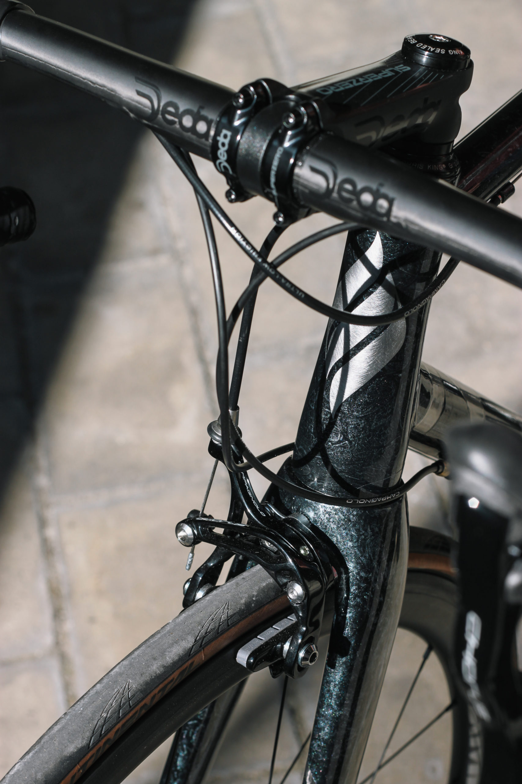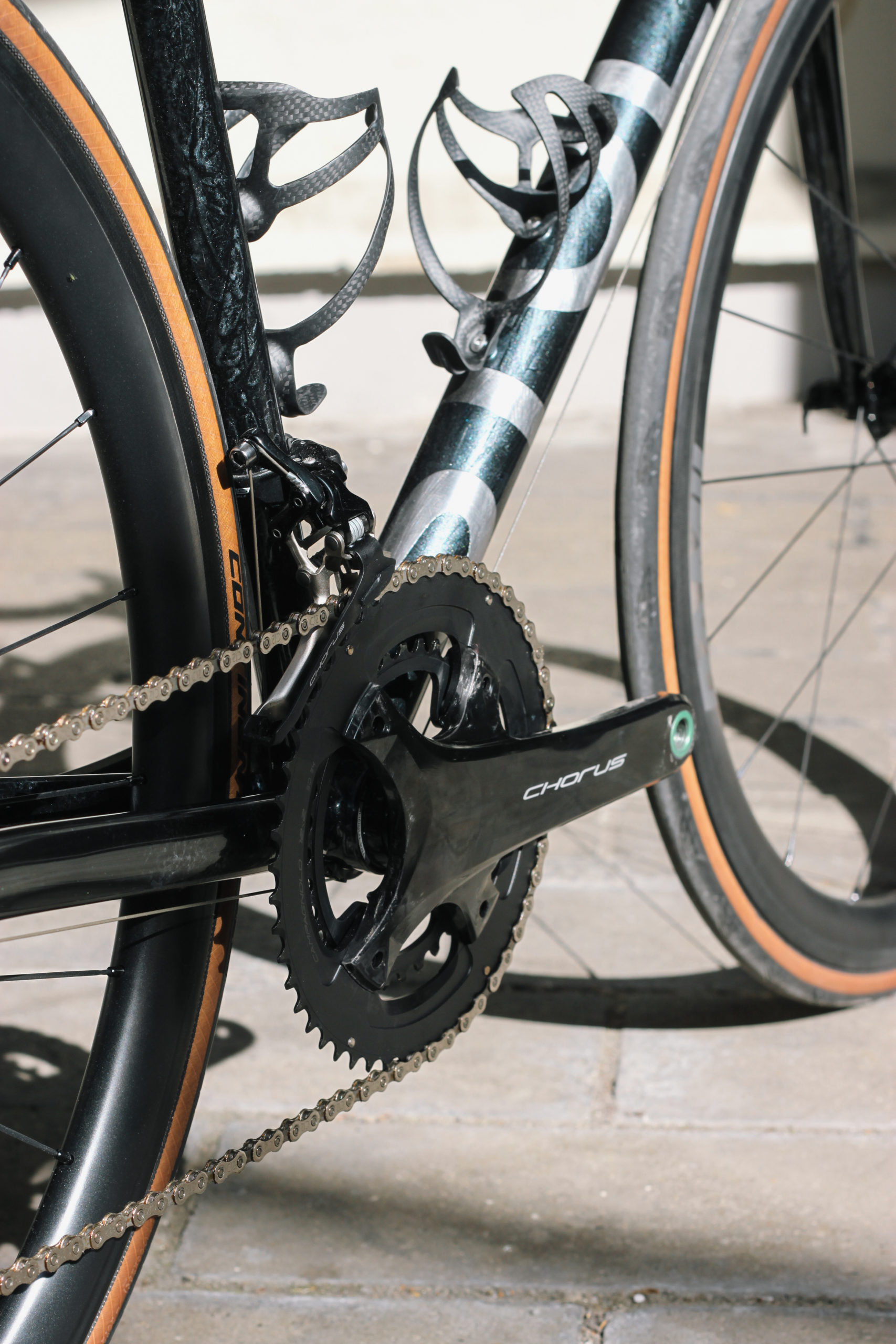 Columbus Spirit HSS 57cm, Campagnolo Chorus groupset, Damil DR-18C wheelset + Continental Grandprix 5000 25mm tires and Deda Superzero finishing kit, Chris King Dropset 2 headset + Selle Italia SP-01 Superflow saddle.