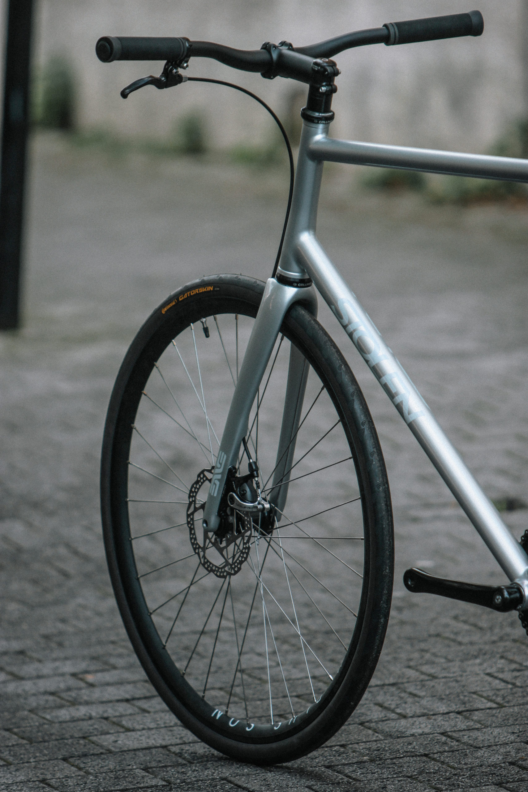 Fabriqué en tubes Columbus Life, avec une fourche route ENVE qui peut accueillir des pneus en 32mm, une paire de roues rayonnées à la carte sur jante H+SON Archetype, c’est un vélo parfait pour affronter les péripéties du traffic parisien.